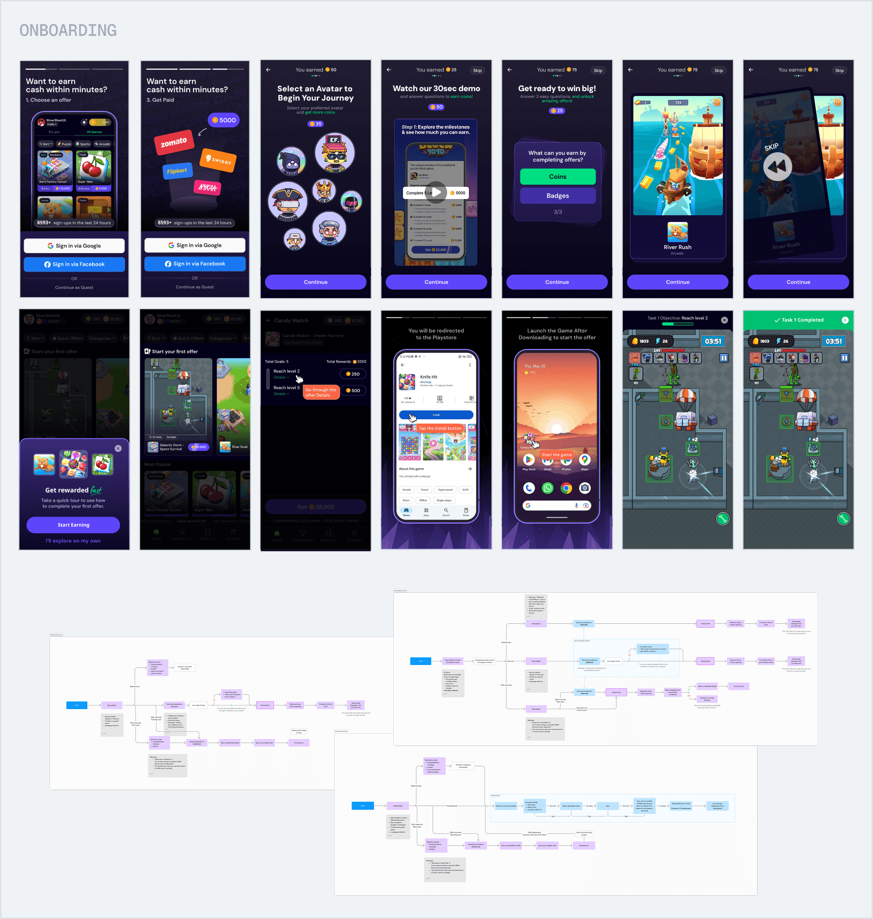 Through prototyping, analytics, and iteration, we explored how reward mechanics, tracking visibility, and onboarding states could work together seamlessly within CashPlay.