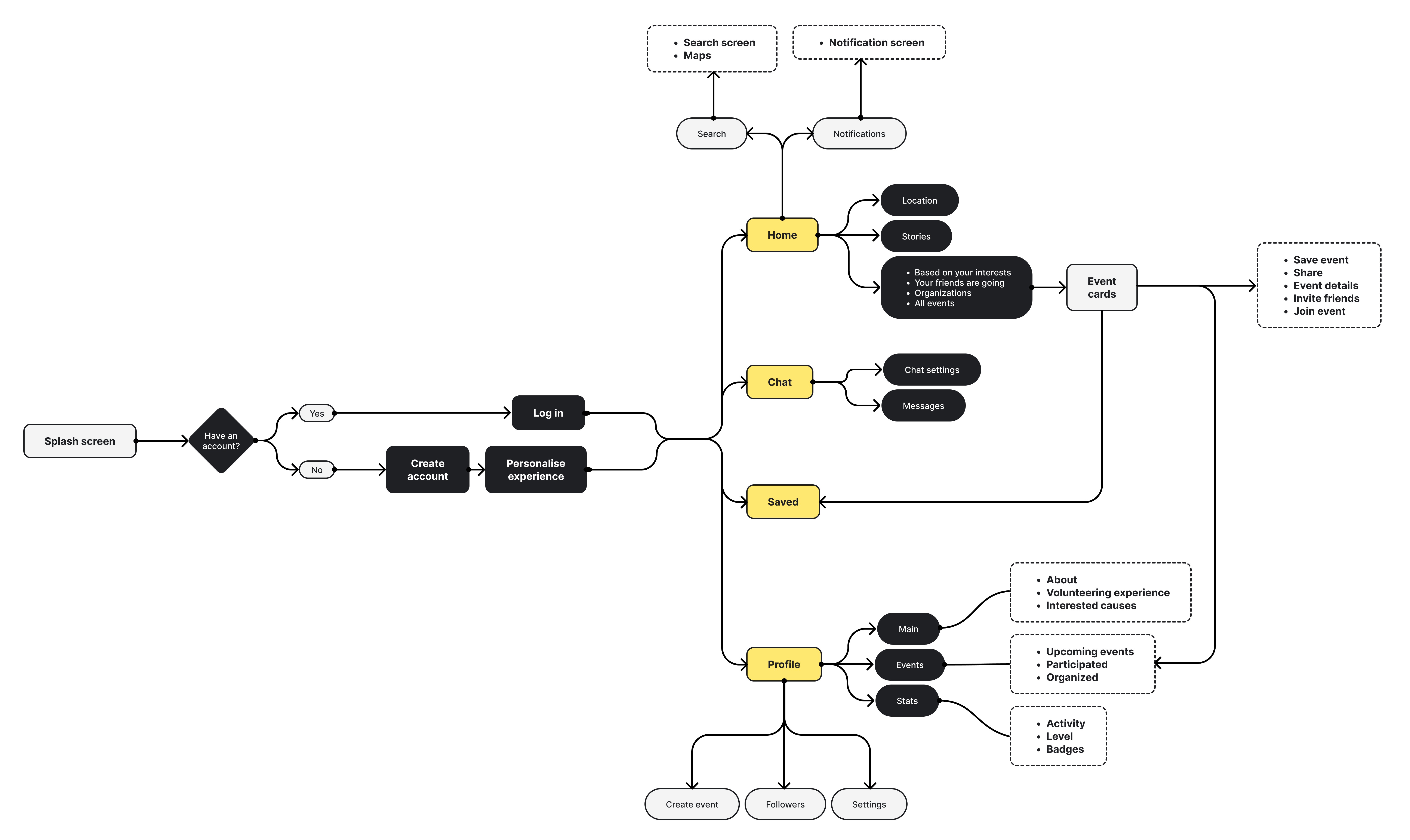 After conducting the research and analysis, I proceeded to plan the app's structure, carefully considering the optimal placement of each feature to enhance the user experience.